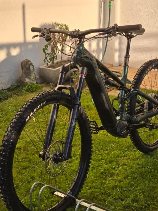 Bicicleta eléctrica Cannondale en color verde oscuro. - Cuadro de aluminio. - Ruedas de 29 pulgadas. - Frenos de disco hidráulicos. - Suspensión delantera y trasera. Para mes info escribirme.