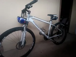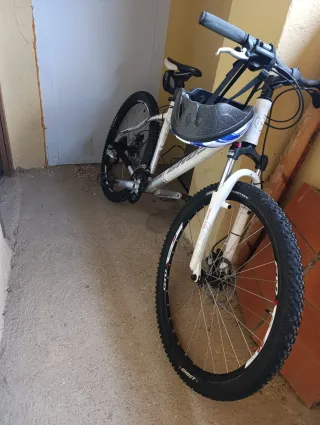 Bicicleta de montaña marca Ghost en color blanco. Se encuentra en buen estado. - Cuadro de aluminio. - Suspensión delantera. - Frenos de disco. - Ruedas de 29 pulgadas. - Incluye casco azul y blanco.