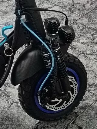 Patinete eléctrico en excelente estado, con muy poco uso. - Diseño moderno y deportivo. - Ruedas todoterreno para mayor agarre. - Manillar ajustable en altura. - Luces LED delanteras y traseras.