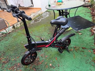 Bicicleta eléctrica en buen estado, comprada hace un año y con poco uso. - Cuadro de aluminio. - Diseño deportivo con detalles en rojo. - Sistema de suspensión. - Pedales de plataforma. -boton de manejo - cargador, candado y llaves intactas. - La parrillera se puede mandar a desmontar, esa parrillera se coloco es porque se iba a usar para trabajar con glovo delivery La pagué en 400€
