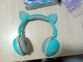 Auriculares azules con orejas de gato