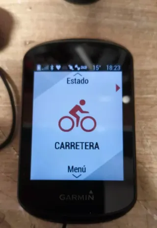 Ciclocomputador Garmin para bicicleta con GPS integrado. Ideal para registrar tus rutas y entrenamientos. - Pantalla clara y legible. - Menú principal accesible. - Ajuste de brillo.