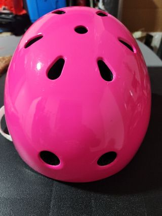 Talla S. 52-55 cm de diámetro.Casco protector de color rosa brillante, ideal para patinar o montar en bicicleta. Usado dos veces. Está como nuevo. - Diseño con múltiples ventilaciones. - Correa ajustable para un ajuste seguro.