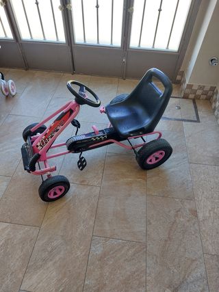 Quad a pedales de color rosa, ideal para que los más pequeños disfruten al aire libre. Tiene un diseño deportivo y llamativo. Asiento regulable
