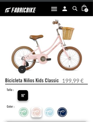 Bicicleta infantil FabricBike modelo Kids Classic en color menta. Ideal para los más pequeños. - Tamaño de rueda: 16 - Color: Menta - Incluye cesta delantera de mimbre - Ruedines incluidos