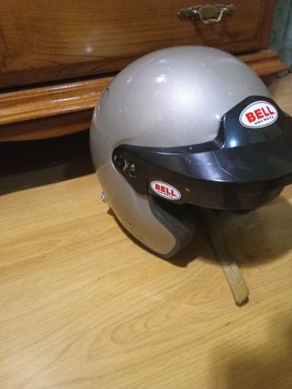 Casco Bell Mag Rallye en color plateado. Válido para hans Por abandono de competición - Diseño aerodinámico. - Visera integrada. - Cierre de seguridad.