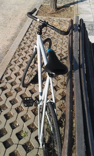 Bicicleta tipo fixie en color gris. Ideal para desplazamientos urbanos. - Cuadro de bicicleta. - Manillar. - Sillín. - Pedales. - Ruedas.