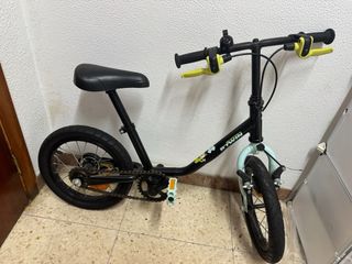 Bicicleta infantil de la marca Btwin, ideal para los más pequeños. - Color negro. - Ruedas de 16 pulgadas. - Frenos delanteros y traseros.