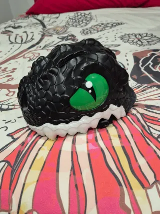 Casco infantil con diseño de dinosaurio en color negro. Ideal para proteger a los más pequeños en sus aventuras. - Diseño de dinosaurio. - Color negro. - Ojos verdes llamativos. - Detalles blancos en la mandíbula. Regalo el otro casco de las fotos con la compra. Ha tenido trote superficial de apoyarlo en el suelo pero esta fenomenal.