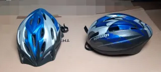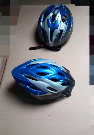 Se venden dos cascos de bicicleta en colores azul y plateado. Ideales para protegerse en tus salidas. - Diseño aerodinámico. - Sistema de ventilación. - Correas ajustables.