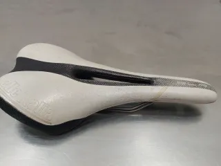 Sillín de bicicleta Selle Italia SLR Flow en color blanco y negro. Diseño deportivo y ergonómico. - Cubierta blanca con detalles en negro. - Logotipo de Selle Italia en relieve. - Raíles metálicos.