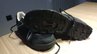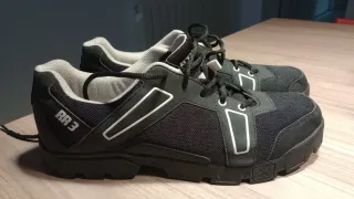 Zapatillas de ciclismo BTT de Decathlon, modelo RR3. Diseñadas para ofrecer comodidad y rendimiento en tus rutas. - Color negro con detalles blancos. - Cierre con cordones. - Suela robusta para agarre. Son talla 45