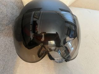 Casco negro para patinete con visor. - Ajustable para mayor comodidad. - Visor integrado para protección ocular.