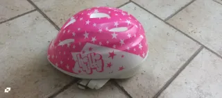 Casco de bicicleta para niña con un divertido diseño de estrellas rosas sobre fondo blanco. Incluye correas ajustables para mayor seguridad. - Talla XS. - Diseño de estrellas. - Color rosa y blanco. - Correas de sujeción.