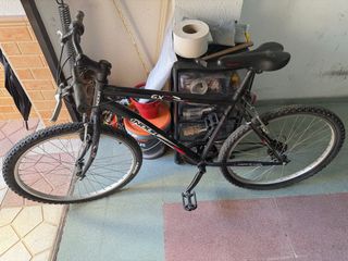 Bicicleta de montaña FS en perfecto estado, lista para usar. - Cuadro de color negro con detalles rojos. - Ruedas de montaña. - Suspensión delantera y trasera.