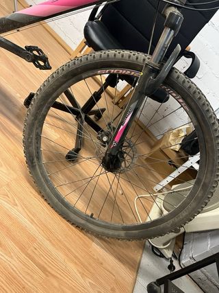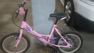 Bicicleta infantil con un diseño moderno y llamativo. Solo ha salido dos veces a la calle . Los neumáticos están perfectos - Cuadro de color blanco. - Horquilla delantera de color rosa. - Ruedas todoterreno.