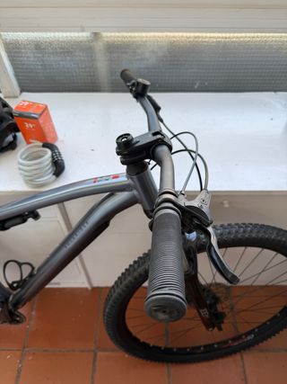 Bicicleta EXPL 520 MTB Gris Bicicleta de montaña con un diseño moderno y resistente. La bici esta en buen estado como mucho puede haber algún arañazo pero no es visible, la bici funciona perfectamente y no me ha dado nunca ningún fallo. Con la bici incluye 3 cámaras un hincha ruedas y también un casco