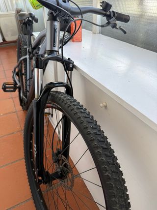 Bicicleta de montaña con un diseño moderno y resistente. La bici esta en buen estado como mucho puede haber algún arañazo pero no es visible, la bici funciona perfectamente y no me ha dado nunca ningún fallo. Con la bici incluye 3 cámaras un hincha ruedas y también un casco