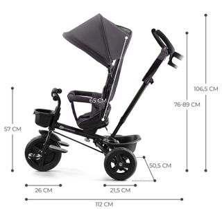 Triciclo AVEO de Kinderkraft, usado solo una vez. Se encuentra en perfecto estado. - Color gris. - Capota ajustable. - Barra de empuje para padres. - Cesta de almacenamiento. - Reposapiés. - Ruedas de goma. - Dimensiones: 112 cm (largo) x 50,5 cm (ancho) x 106,5 cm (alto). - Altura del asiento: 57 cm. - Ancho del asiento: 65 cm. - Distancia del manillar al asiento: 26 cm. - Distancia de la rueda trasera al asiento: 21,5 cm. - Altura del manillar ajustable: 76-89 cm.