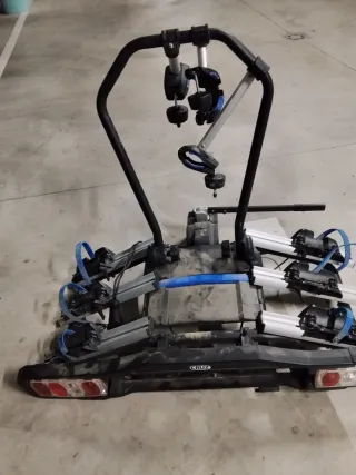 Portabicicletas para bola de remolque. - Capacidad para varias bicicletas. - Sistema de sujeción seguro. - Luces traseras integradas. - Marca: CRUZ Para 3 bicicletas con llave para seguridad,plegable en muy buen estado Y placa obligatoria para el transporte