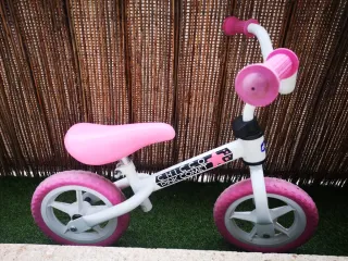 Bicicleta de aprendizaje Chicco en color rosa, ideal para los primeros paseos. Sillín ajustable