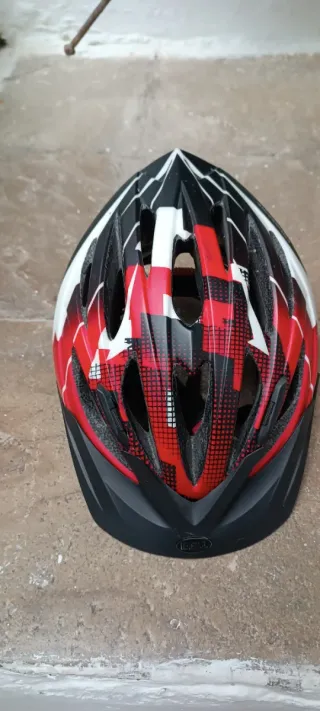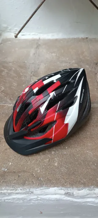 Casco de ciclismo Bell Crossfire en color rojo. Diseñado para mountain bike. - Diseño deportivo y ventilado. - Visera integrada. - Acabado en rojo, blanco y negro. - abuen estado y poco uso.