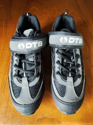 Zapatillas Dtb SPRINT para pedales automáticos en bicicleta de montaña. Talla 37. Usadas un par de veces para spinning, como nuevas. También envío las dos piezas de goma con sus cuatro tornillos (foto 6) para sustituir por las calas y poder utilizarlas en pedales normales.