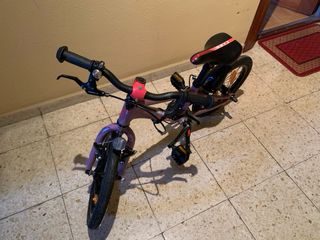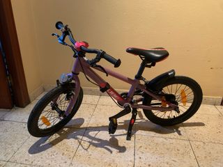 Bicicleta de montaña para niña o niño en excelente estado, casi sin uso. - Color rosa y morada - Ruedas de 16 pulgadas. - Frenos de mano. - Guardabarros trasero. - Pata de cabra.
