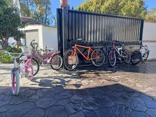 Conjunto de seis bicicletas a de diferentes estilos y tamaños.si se llevan las seis 100€ oferta - Bicicleta gris - Bicicleta blanca y rosa. - Bicicleta morada. - Bicicleta naranja. - Bicicleta roja y plateada. - Bicicleta negra.