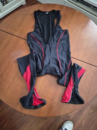 Mono de ciclismo Sportful en color negro con detalles en rojo. Ideal para entrenamientos y competiciones. Talla xl. - Tirantes elásticos. - Cremalleras en los tobillos para facilitar el acceso. - Costuras en contraste. Bicicletas, cascos, trajes.