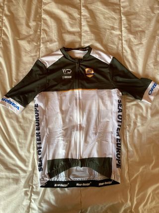Talla S. No se ha usado. Maillot de ciclismo Wear Design Ciclobrava Sea Otter Europe. Verde oscuro y blanco.