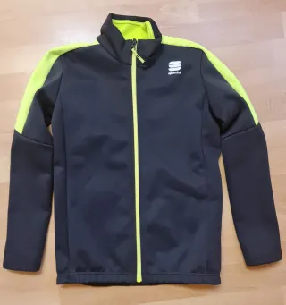 Chaqueta deportiva Sportful para junior, ideal para jóvenes ciclistas. - Color negro con detalles en amarillo neón. - Cuello alto con cremallera. - Logo de Sportful en el pecho. Talla: 12 años