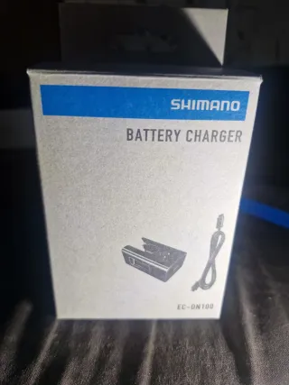 Cargador de batería Shimano modelo EC-DN100. - Incluye cargador y cable. - Diseñado para baterías Shimano.