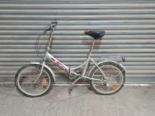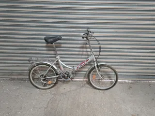 Bicicleta plegable de estilo urbano en color gris plateado. Ideal para desplazamientos por la ciudad. - Ruedas de tamaño reducido. - Sillín ajustable en altura. - Portaequipajes trasero.