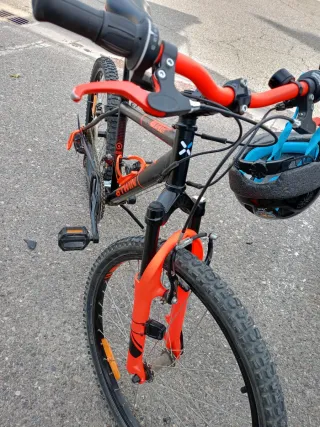 Bicicleta de montaña de 24 pulgadas, ideal para niños y jóvenes. - Está como nueva con muy poco uso. - Ideal para niños de 7 a 10 años. - Cuadro de color negro y naranja. - Frenos de mano. - Ruedas todoterreno.
