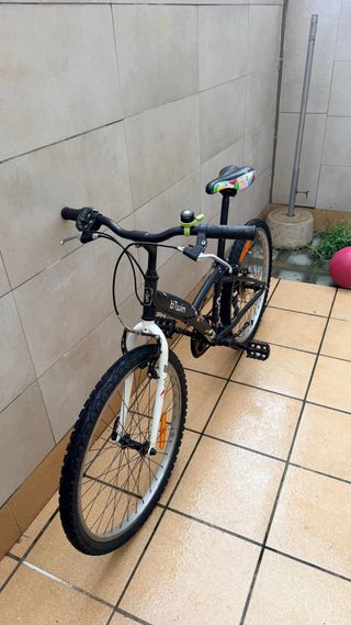 Bicicleta Rockrider BTWIN de 24 pulgadas. - Cuadro de color negro. - Sillín con diseño colorido. - Ruedas de 24 pulgadas. Marchas y freno funciona muy bien ruedas en muy bien estado! Para ninos hasta la 08-10 anos