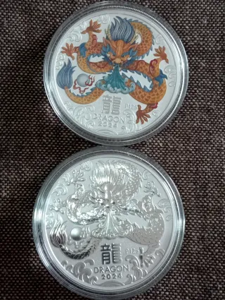 2 monedas conmemorativas del año Dragón 2024. - Diseño detallado de un dragón. - Inscripción DRAGON 2024 y 龍 P125. Precio dragón ........................75 Precio dragón esmaltado .....85. Se entregarían las piezas de las fotos, cada una con su precio marcado. Mire mi perfil