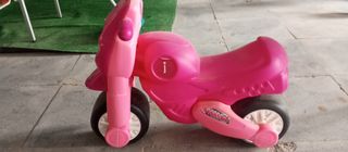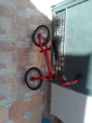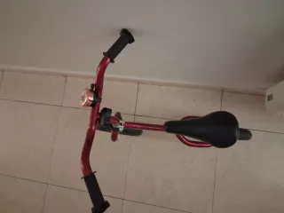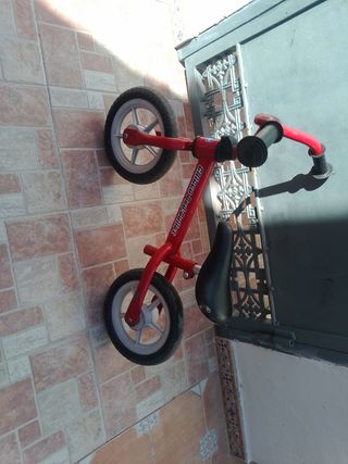 Bicicleta sin pedales chico, esta batallada y lleva dos pelados en el asiento, pero es totalmente funcional y práctica para que el peque coja equilibrio y pasar a la de pedales.