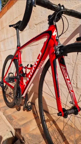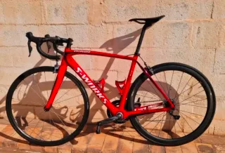 Bicicleta de carretera Specialized Tarmac Sworks SL4. Talla 54 M. POTENCIÓMETRO, todo en carbono, potencia Sworks. - Grupo electrónico Ultegra Di2 de 22v. - Cuadro Sworks de carbono fact 11r color rojo brillante. - Bielas Sworks de carbono con ceramicspeed y POTENCIÓMETRO Quarq a las dos piernas. - Ruedas tubulares de carbono la de atrás con perfil 35mm y bujes Tune que suenan de maravilla. - Portabidones Blackburn en carbono. Revisada para su venta