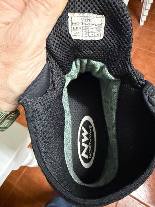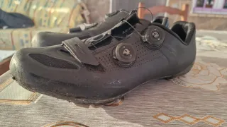 Zapatillas Mavic de ciclismo en color negro, ideales para MTB y spinning. Cuentan con un diseño deportivo y funcional. Talla 46 y 2/3 pero en realidad tallan pequeñas, yo utilizo normalmente la talla 45. - Cierre con cordones. - Detalle de logo en color dorado. - Tirador trasero para facilitar su colocación.