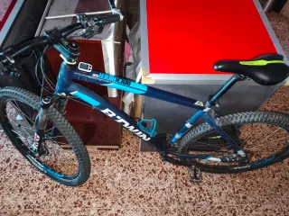 Bicicleta de montaña Rockrider 520 con ruedas de 27.5 pulgadas. - Cuadro de aluminio. - Suspensión delantera. - Frenos de disco. - Cambio Shimano. La bicicleta es del 2017 pero está cuidada tiene suspensión delantera cambiada x una superior,y el cambio trasero y cassette recién cambiados