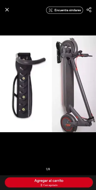 Soporte de pared para colgar patinetes o bicicletas. - Fabricado en metal resistente. - Diseño compacto para ahorrar espacio. - Incluye tornillos para su instalación.