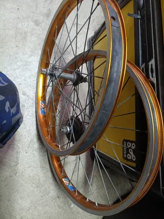 Pareja de llantas Ambrosio para BMX. Listas para usar. - Color dorado - Diseño de radios. - Incluye dos llantas delantera y trasera