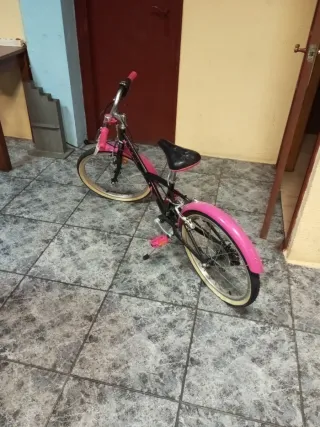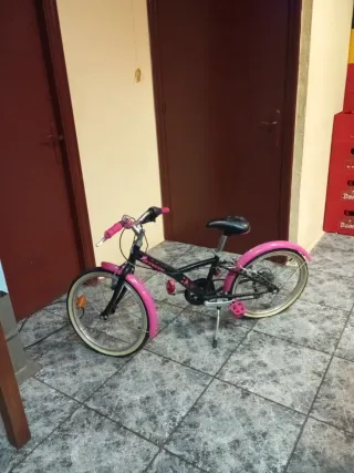 Bicicleta de niña BTWIN en buen estado, con detalles en color rosa. - Cuadro resistente. - Ruedas de buen tamaño. - Sillín cómodo.