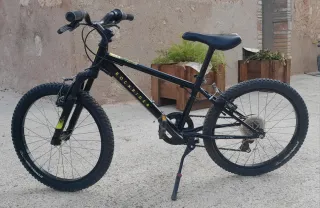 Bicicleta infantil Rockrider de 20 pulgadas, ideal para los más pequeños. - Cuadro resistente. -Horquilla con suspensión. - Ruedas de 20 pulgadas. -Pastillas de freno en buen estado. -Neumaticos en buen estado. - Marca Rockrider.