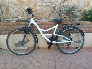Bicicleta de paseo marca Country, con ruedas de 26 pulgadas. - Cuadro de color blanco. - Sillín negro. - Portabultos trasero.