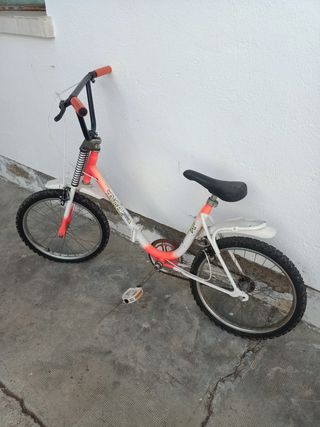 Bicicleta infantil en buen estado, con muy poco uso. - Rueda de 20 pulgadas. - Diseño blanco con detalles en rosa.