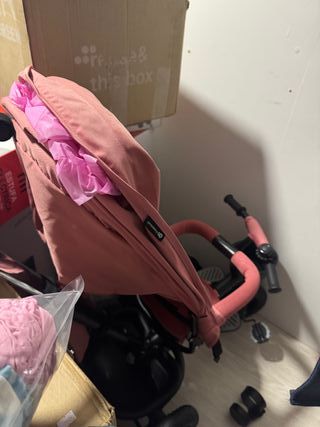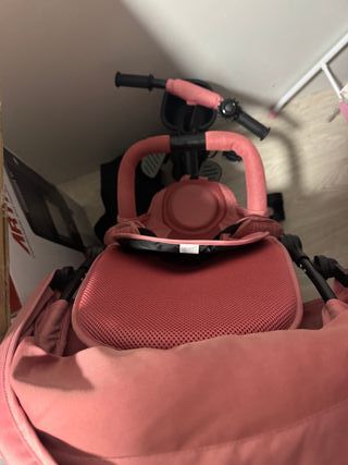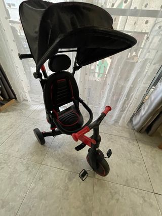AIYAPLAY Triciclo evolutivo 4 EN 1 color y rojo. - Barra telescópica de empuje. - Capota para proteger del sol. - Carga máxima 25kg. - Reposapiés, barrera de seguridad y cinturón. - Bolsa guarda objetos. Esta como nuevo, ya que no se le ha dado mucho uso.