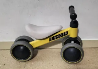 Triciclo de aprendizaje Sawyer en color amarillo, ideal para los primeros desplazamientos. Para niños a partir de 1 año con altura entre 75cm y 85cm. - Diseño sin pedales para fomentar el equilibrio. - Ruedas resistentes para un uso duradero. - Asiento cómodo y ergonómico. - Manillar con puños para un agarre seguro.