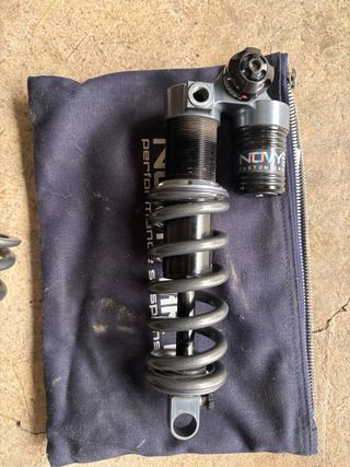 Amortiguador de muelle para bicicletas de montaña de la marca Novyparts. - Incluye dos muelles ext de 425 y 475 lbs - Amortiguador custom hecho a medida CNC - Ajustes de compresión y rebote. - Anclaje trunnion -Pieza de alta calidad valida tanto para enduro com Dh